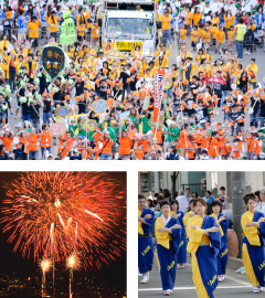 こ の期間中、各町会では踊り舞台を設け、老若男女が輪になって踊りました。また、協賛の催物も多く、軍艦拝観、花電車運転、花自動車行列、オートバ イ行列、小中学生の旗行列、商店街の仮装行列と万灯行列、大名行列、松前神楽、江差鹿舞、商店訪問マラソン、懐古展、煙火大会、街頭放送等で市中は大いに 賑わいました。